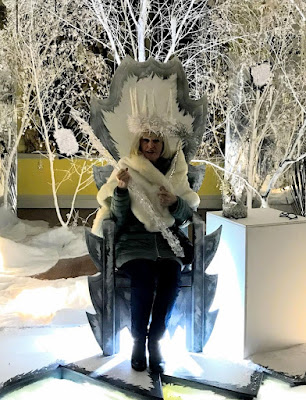 Then through a narrow corridor hung with old coats. The temperature suddenly dropped and we entered into a room full of snow covered Christmas trees - we had arrived in Narnia. It was an unexpected and charming scene. For a moment we forgot we were mature women of a certain age and took it in turns to dress up as the White Witch of Narnia.